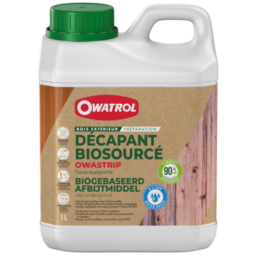 Ce décapant gel à l'eau biosourcé est applicable tous supports : sur bois (sauf chêne, châtaignier et marqueterie), sur métal (sauf aluminium), sur plastique, sur pierre, sur ciment...Sèche lentement.