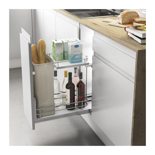 Panier coulissant 2 niveaux sur coulisses à sortie totale avec amortisseur.