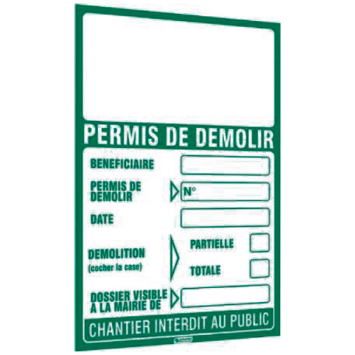PANNEAU PERMIS DE DEMOLIR PP ALVEOLAIRE 400 G/M2 800X1200 MM |