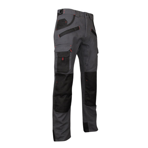 Ceinture resserrable par pattes élastiquées sur les côtés. 2 poches western avec 1 poche ticket. 2 poches zippées. Poches genouillères double position en Oxford résistant 900D. Côté gauche au porté : passant porte marteau, 1 poche cuisse à soufflet + poche à outils. Côté droit au porté : 1 poche cuisse à soufflet + 1 poche téléphone. Dos : 2 poches semi-flottantes fermées par bandes auto-agrippantes, dont une avec rabat. 1 poche mètre et 1 poche à stylo. Ceinture rehaussée dos, larg [...]