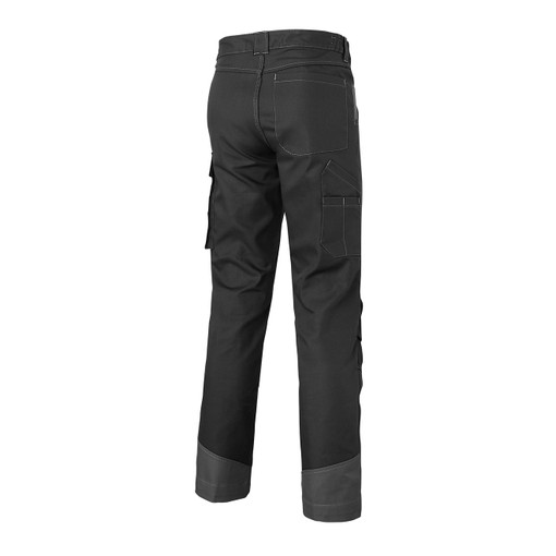 Pantalon de travail résistant et léger très pratique grâce à son seul ourlet pour 2 longueurs de jambe ceinture élastiques côtés fermée par un bouton, 2 poches cavalières, 1 poche ticket contrastée côté droit, braguette zip spirale, réhausses dos, 1 poche mètre côté droit avec surpoche 2 compartiments, 1 poche cuisse soufflets latéraux fermée par rabat ruban agrippant plaquée sur poche cuisse, 1 poche dos côté droit, poches genouillères Polyamide ouverture par le bas 60% coton, 40% [...]