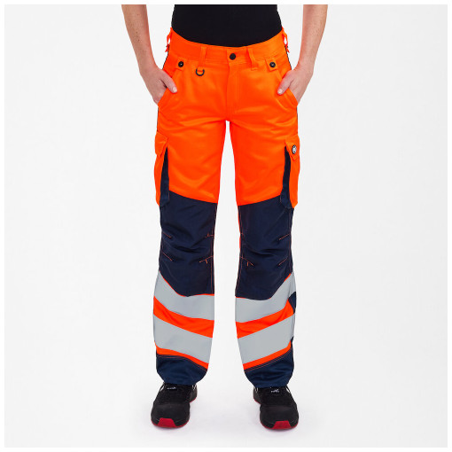 Pantalon fluorescent fonctionnel et résistant à l usure spécialement conçu pour les femmes. Ajustement optimal avec genouillère de forme ergonomique. Le tissu est résistant et respirant. Il est fabriqué en 50% polyester régénéré. Lélastique arrière à la taille assure un bon ajustement et permet au pantalon de rester bien en place pendant les mouvements. Anneau en D avant pour le rangement de la carte d identité, par exemple. Deux grandes poches obliques sur le devant. Deux poches ar [...]