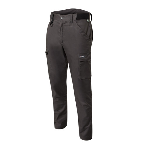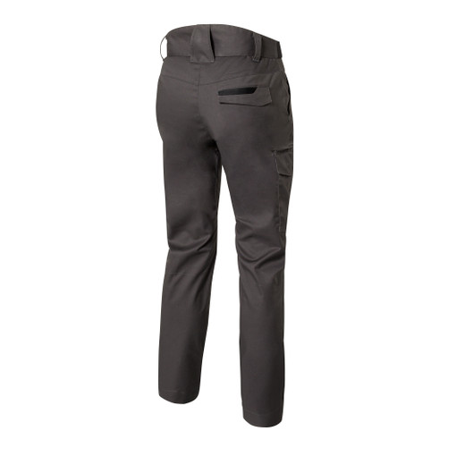 2 poches italiennes cotées avec détails de surpiqures, 2 poches cuisses cotées compartimentées à rabats (poche smartphone et poche mètre ruban), 1 poche dos à rabat.