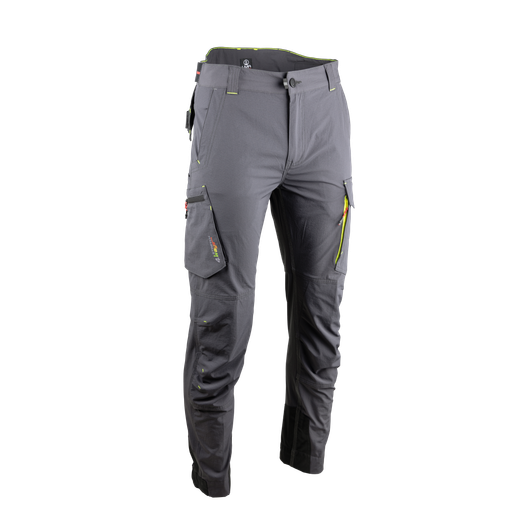 Bouton plastique 4 trous souple Ø 20mm Braguette zip injecté plastique Ceinture composée de 5 passants + 1 passant dos large avec réhausse lombaire, bande élastiquée anti-glisse et resserrable par pattes extensibles dos Poches italiennes Poche cuisse gauche fermée par rabat et scratch Surpoche fermée par zip Poche cuisse droite à soufflet, fermée par zip avec ouverture poche mètre Poche dos gauche à soufflet, avec rabat fermé par scratch Support porte marteau semi volant en Oxford 300D Renfo [...]