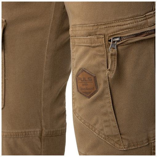 100% coton poches holster amovibles et renforts genoux en 100% polyamide armuré haute ténacité.