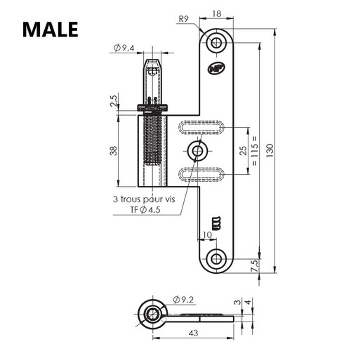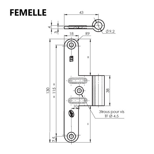 Paumelle universelle bois 6055