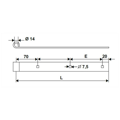 PENTURE DROITE 35X5X300 MM Ø14 TC7,5 NF CATA |