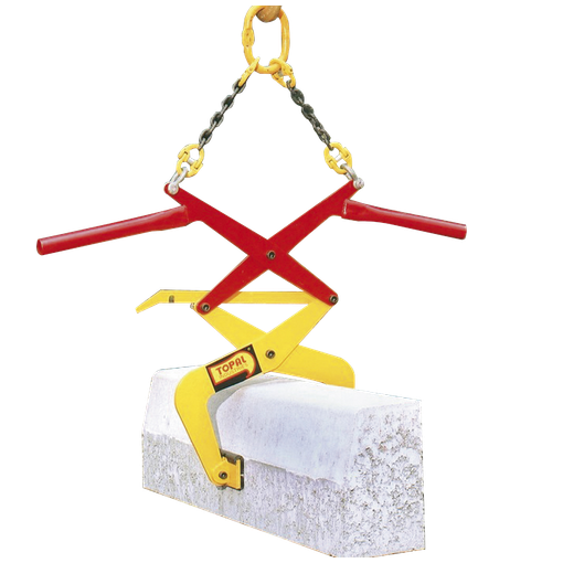manutention manuelle ou par engin de levage (dispose d'orifices pour l'installation d'élingue chaîne) d'éléments béton de 120 à 300 mm de large, notamment bordures de trottoir