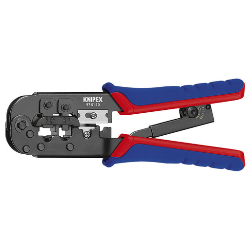 pour sertir les fiches Western à 6 et 8 pôles des type RJ 11/12 (largeur 9,65 mm) et type RJ 45 (largeur 11,68 mm);forme longue