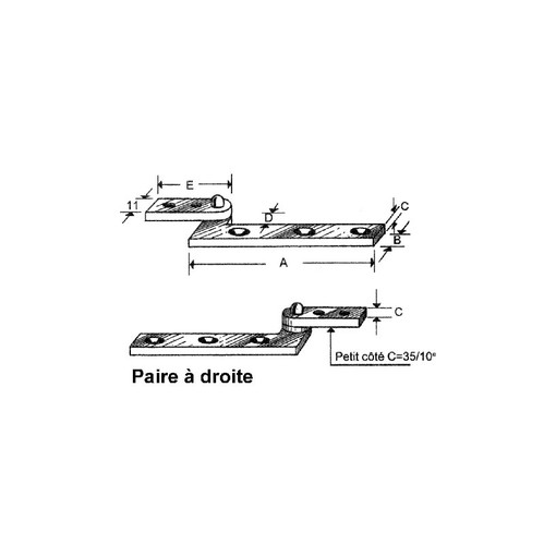 Pivot coudé laiton poli avec petit côté pour l'épuipement d'une porte.