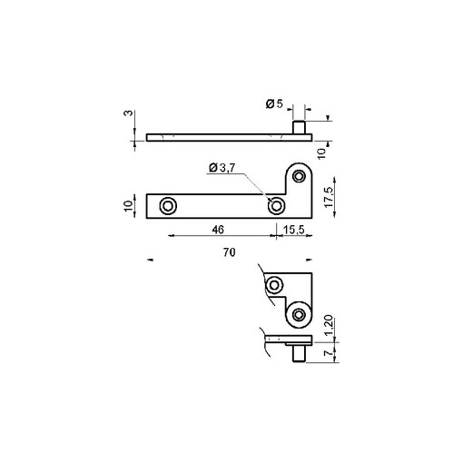 Pivot acier laitonné coudé.