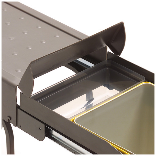 Poubelle coulissante plastique sur armature métallique.