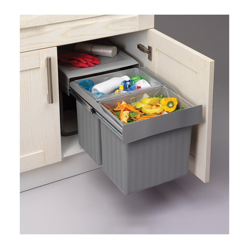 Poubelle à extraction frontale avec coulisses sortie totale.Solution idéale pour le tri sélectif dans les espaces réduits.2 seaux de 16L