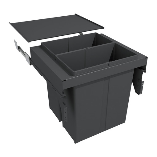 Collecteur grande capacité avec seaux suspendus, côtés en métal et coulisses incluses.Adaptable sur caisson épaisseur 16 mm ou 19 mm. 2 seaux de 40 L