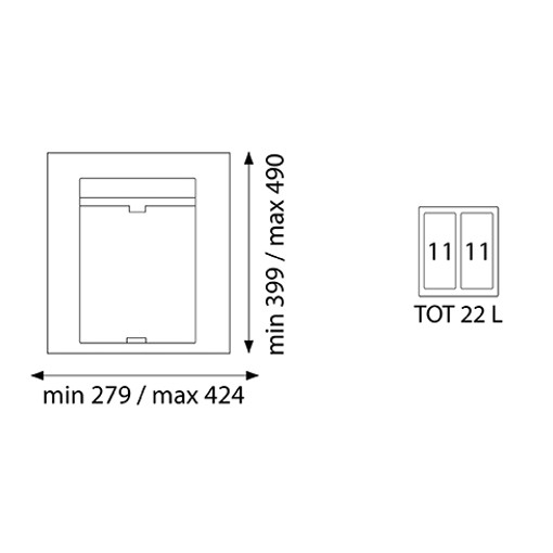 Poubelle pour tiroir disposant de 2 bacs de 11L.