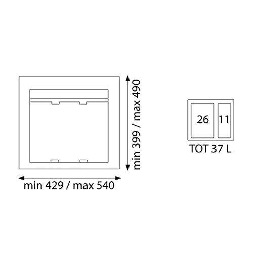 Poubelle pour tiroir disposant de 1 bac de 11L et 1 bac de 26L.