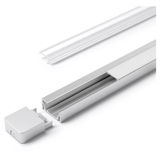 Profil aluminium pour pose encastrée ou en applique. Deux bandes leds peuvent être insérées dans le profil, une avec un éclairage direct, et une autre avec un éclairage en diagonale. Livré avec diffuseur. Livré sans les embouts (voir accessoire)