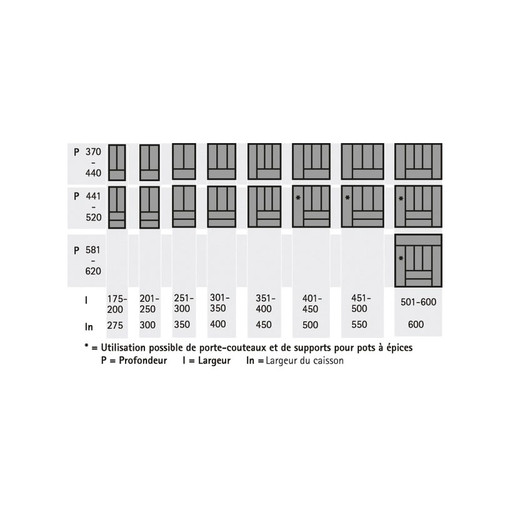 Certains range couverts peuvent être équipés d'accessoires bois.