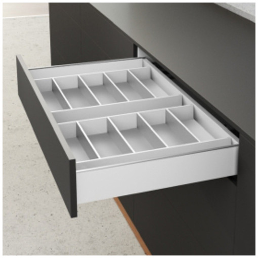 Pour tiroir AvanTech YOU, pour caisson de largeur mini 350 mm.Pour tiroir ArciTech, pour caisson de largeur mini 400 mm.2 pièces sont utilisées pour caisson de largeur à partir de 800 mm.Il est recommandé d'utiliser un tapis antidérapant.Combinaison possible avec OrgaTray 270.