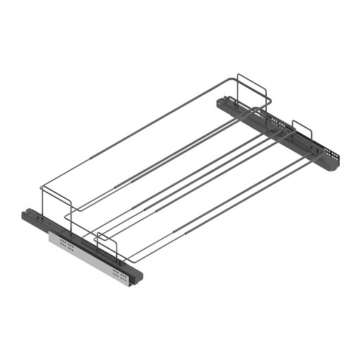 Range chaussures coulissant en fil d'acier. Largeur réglable.Monté sur coulisses Quadro Hettich avec sortie totale et amortisseur.Fixation latérale.