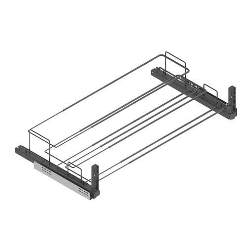 Range chaussures coulissant en fil d'acier. Largeur réglable.Monté sur coulisses Quadro Hettich avec sortie totale et amortisseur.Fixation latérale.