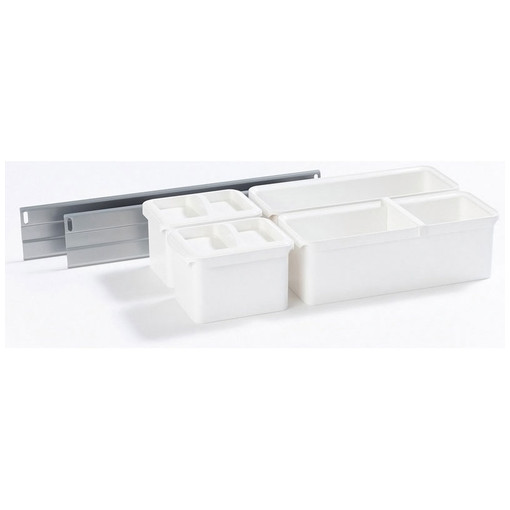 4 rangements suspendus.Positionnement en haut du cadre.Ensemble composé de :2 traverses réversibles acier epoxy gris2 bacs contenance 1L - Largeur 115 mm, profondeur 150 mm, hauteur 95 mm2 bacs contenance 2,1L - Largeur 115 mm, profondeur 300 mm, hauteur 95 mm2 couvercles
