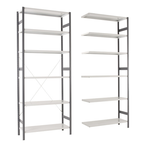 Rayonnage galvanisé principalement destiné au milieu industrie permet le rangement de petit matériel léger et en vrac (jusqu'à 129 kg/tablette) non conditionné grâce aux tablettes tôlées et aux accessoires de séparation disponibles muni d'échelles, disponibles en version ouverte ou fermée capacités de charge jusqu'à 1600 Kg par travée et selon configuration montage sans vis ni boulon échelle : profil « T » 40'd737 mm perforé au pas de 40 mm à l'intérieur des montants pied plastique, [...]