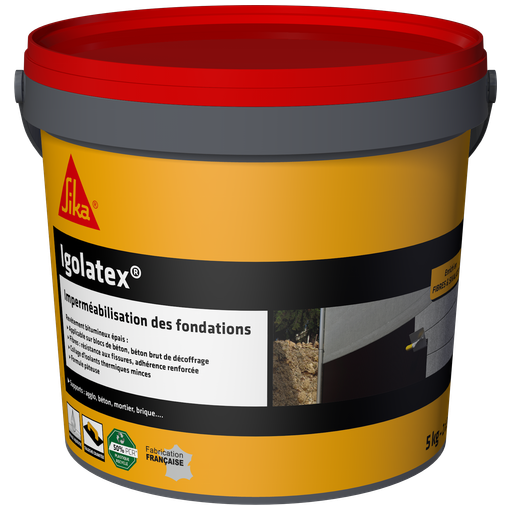 Emulsion de bitume stabilisée de couleur noire additionnée de SikaLatex® et de fibres organiques. Bâtiment et Industrie: Imperméabilisation des soubassements enterrés d'aspect très rugueux Protection des bétons contre les agressions chimiques légères Collage en paroi des matériaux d'isolation thermiquedans le batiment : polystyrène expansé, fibre deverre, laine de roche, mousse de verre. Agriculture: Protection intérieure des fosses à lisier / Protection des parois de silos à pulpe / Prot [...]