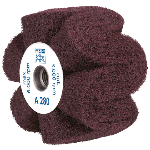 Composée de plusieurs bandes de fibres abrasives VLIES très ondulées et enroulées autour d'un noyau