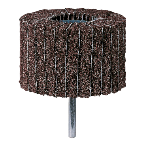 Couches de fibres VLIES disposées à la manière d'une roue à lamelles + toile abrasive intercalée entre les lamelles