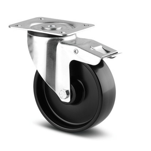 ROULETTE DE MANUTENTION LEGERE PIVOTANTE A BLOCAGE TOTAL FIXATION PLATINE 100 KG |