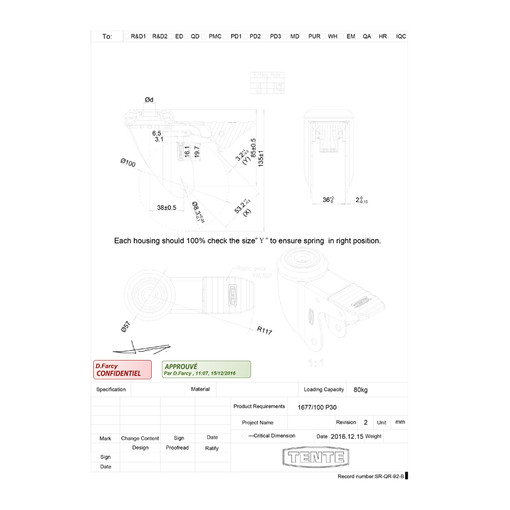 ROULETTE PIVOTANTE D.100 A.BLOCAGE HT.135 T.FIX. |