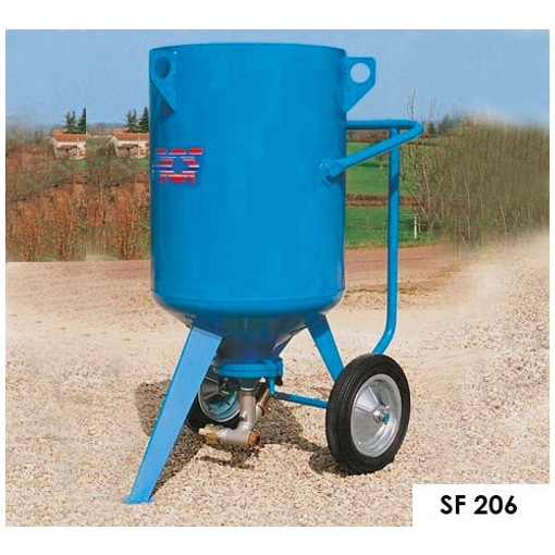 Livrée avec vanne de réglage d'abrasif avec indicateur d'ouverture, tous raccords, soupape de sécurité, épurateur primaire, brancards, fermeture automatique, protection du cône de fermeture, trappe de vidange.