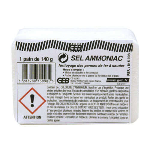 Chlorure d'ammonium employé pour le nettoyage des pannes de fer à souder