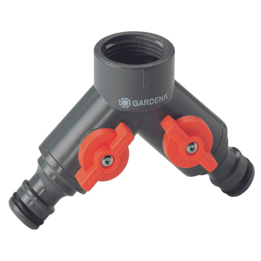Sélecteur 2 circuits, pour robinets 20/27 et 26/34 2, sorties réglables en continu équipées de nez de robinet, pour créer deux réseaux à partir d'un point d'eau.