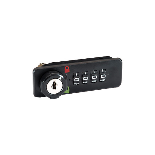 Serrure à combinaison mécanique à 4 chiffres.Pour épaisseur de porte de 1 à 21,5mm.Système de clé passe partout.Code fixe.Convient aux épaisseurs de porte de 1 à 21,5 mm.Plaque de fixation obligatoire et clé passe en option (voir les accessoires)