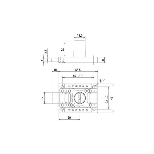 Boîtier 55,5 x 42 mm.
