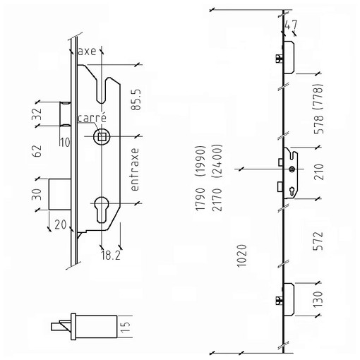 | type points de fermeture auxiliaires | pêne automatique |