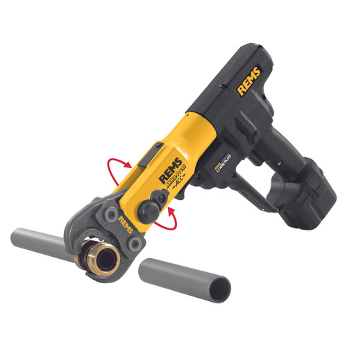 Sertisseuse radiale électro-hydraulique sur batterieu niverselle jusqu au Ø 108 mms ertissage sûr et rapidec apacités de sertissage de raccords (selon marque) :r accords cuivre, inox, électro-zingué Ø 10 108 mm (profil M Ø 54 mm)r accords cuivre frigoriste Ø1/4 - 1 1/8''r accords PER, multicouche Ø 12 75 (110) mmr accords acier Ø3/8 - 2''c ompacte et légère (4,3 kg avec batterie)t rès rapide (par ex. cycle complet raccord cuivre Ø 22 mm env. 6 sec.)t ête pivotante 360°, position de tra [...]