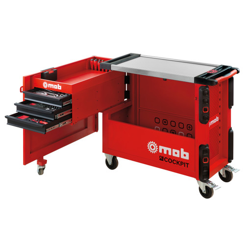 Servante innovante et ergonomique conçue pour offrir un espace de travail optimisé et un accès facilité aux outils structure en L garantissant une stabilité maximale et empêchant tout risque de basculement capacité de charge statique du plateau jusqu'à 1 tonne 3 tiroirs latéraux offrant un accès rapide aux outils sans encombrer le plan de travail 20 emplacements dédiés pour tournevis intégrés au plan de travail amovible kit de prises intégré permettant de recharger des batteries ou outils [...]