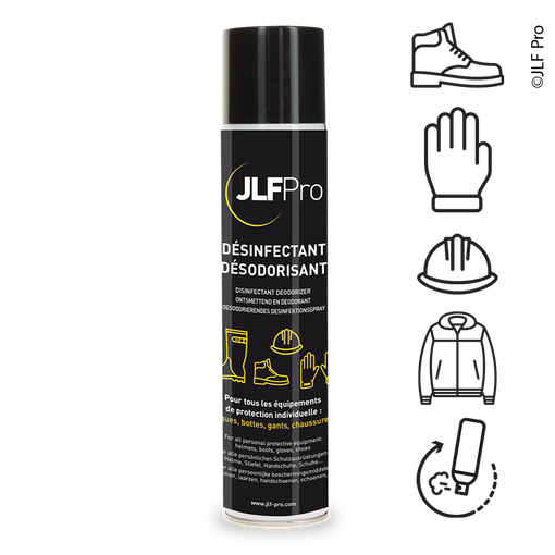 Spray désinfectant et désodorisant pour chaussures, bottes, gants et casques.