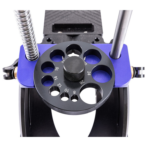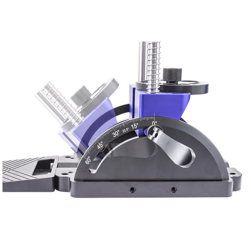 des éléments de serrage réglables servent à fixer le support de perçage sur la pièce à percer.