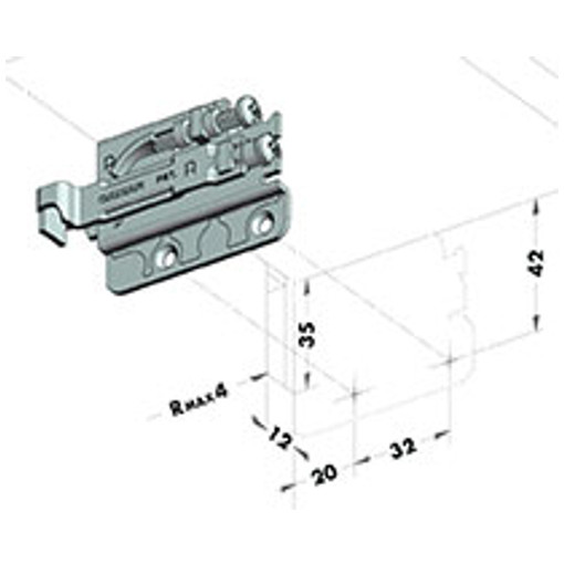 Réglage vertical : 19 mmRéglage horizontal : 12 mm