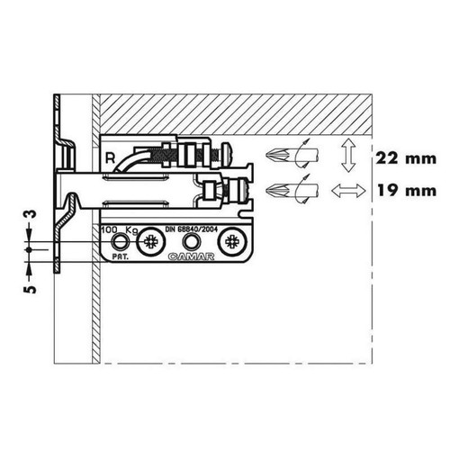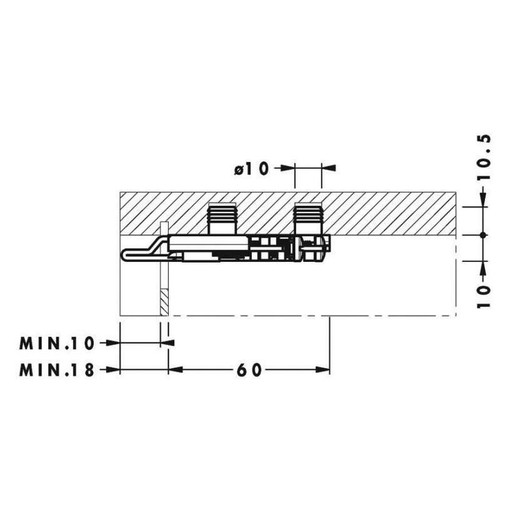 Fixation à enfoncer par tourillons Ø 10x10,5 mm.Livré sans cache.Charge maximale admissible par pièce : 850N