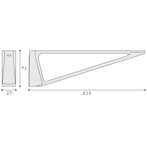 Support zamac pour tablette bois de profondeur maxi 250 mm.