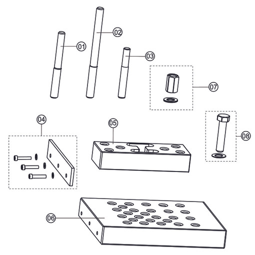 5 tiges de réglage filetées en acier et bloc d'espacement offrant un support précis et une polyvalence
