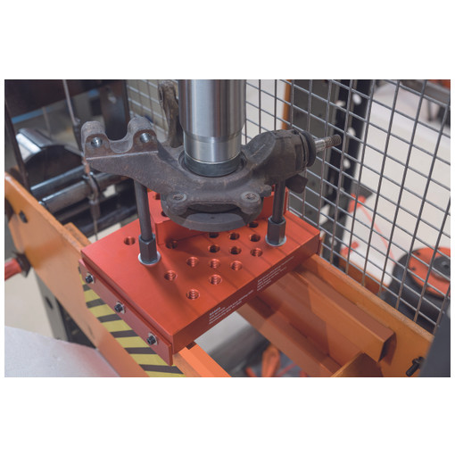 Pour retirer/installer les roulements de roue et les moyeux, les bagues, etc... capacité de charge de 30 T compatible avec la gamme de presses : BH715, BH720, BH730 et BH750 plaques latérales de retenue de sécurité empêchant tout glissement et le risque de mouvement 5 tiges de réglage filetées en acier et bloc d'espacement offrant un support précis et une polyvalence dimensions du bloc : 275 x 200 mm et 40 mm d'épaisseur blocs et plaques latérales en aluminium, pour un poids total de 8,2 kg seu [...]
