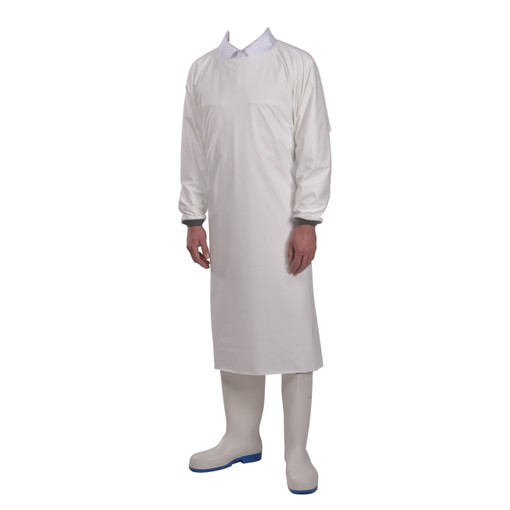 Resiste aux produits d entretien courants. Il est apprecie pour sa souplesse, sa legerete et son excellente resistance a la dechirure. Plage de temperature d utilisation : -30°C a +90°C. Polyurethane sur support polyamide Coloris : blanc, rouge, jaune, bleu marine et vert kaki Epaisseur : 400 'ecm ('b1 10%) Grammage : 170 g/m² ('b1 10%) Fermeture arriere par crochet plastique detectable et elastique tresse polyester. Serrage poignet en neoprene epaisseur 3 mm. Tailles disponibles : SMALL : pour des pe [...]