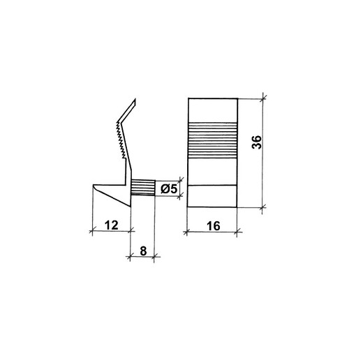 Taquet PVC cranté à tourillon Ø5 pour tablettes épaisseur 10 à 20 mm.