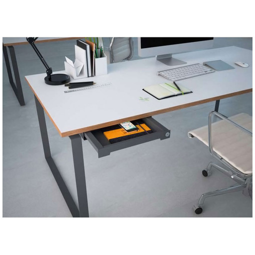 Fixation sous le plateau ou sur le bureau grâce au couvercle (en option).